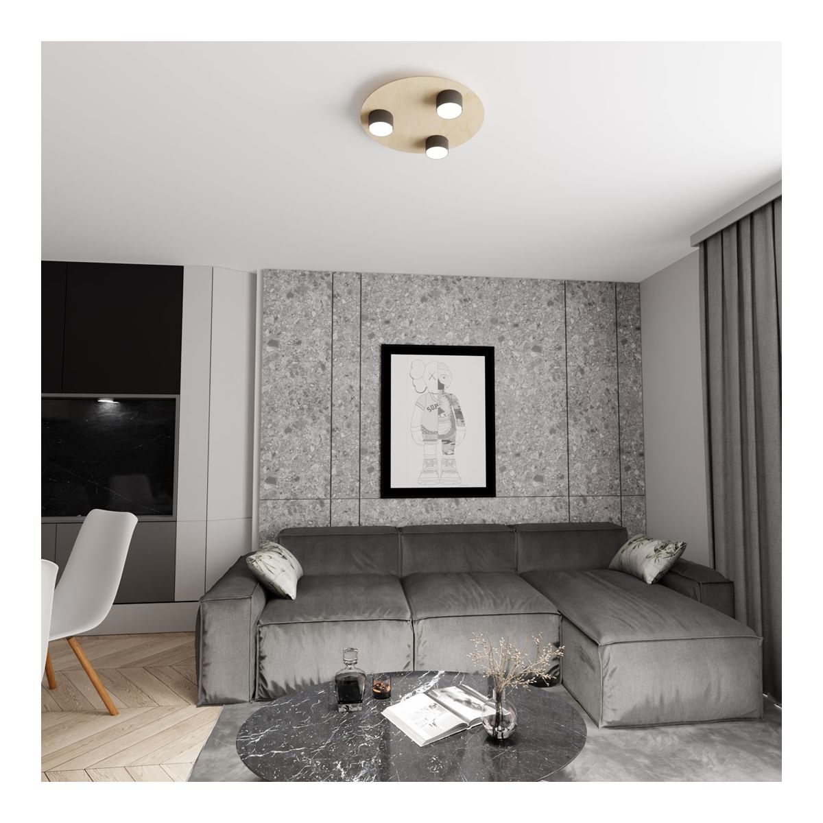 Emibig Pixo Deckenlampe 3x12 W schwarz-holz 1443/3