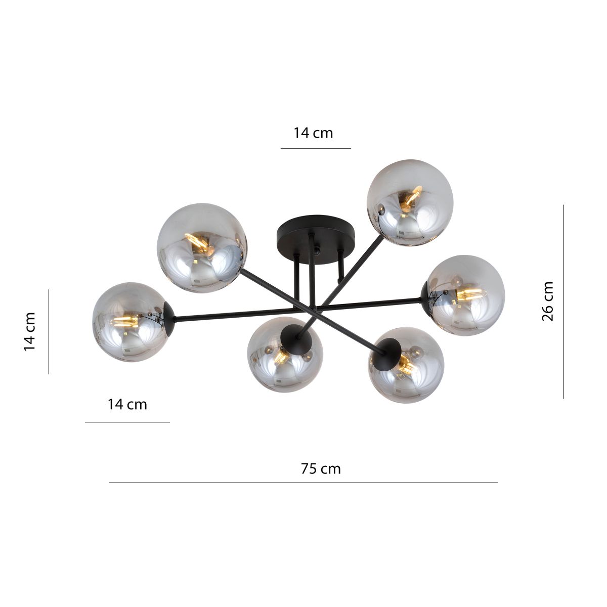 Emibig Roma Deckenlampe 6x10 W schwarz 1245/6