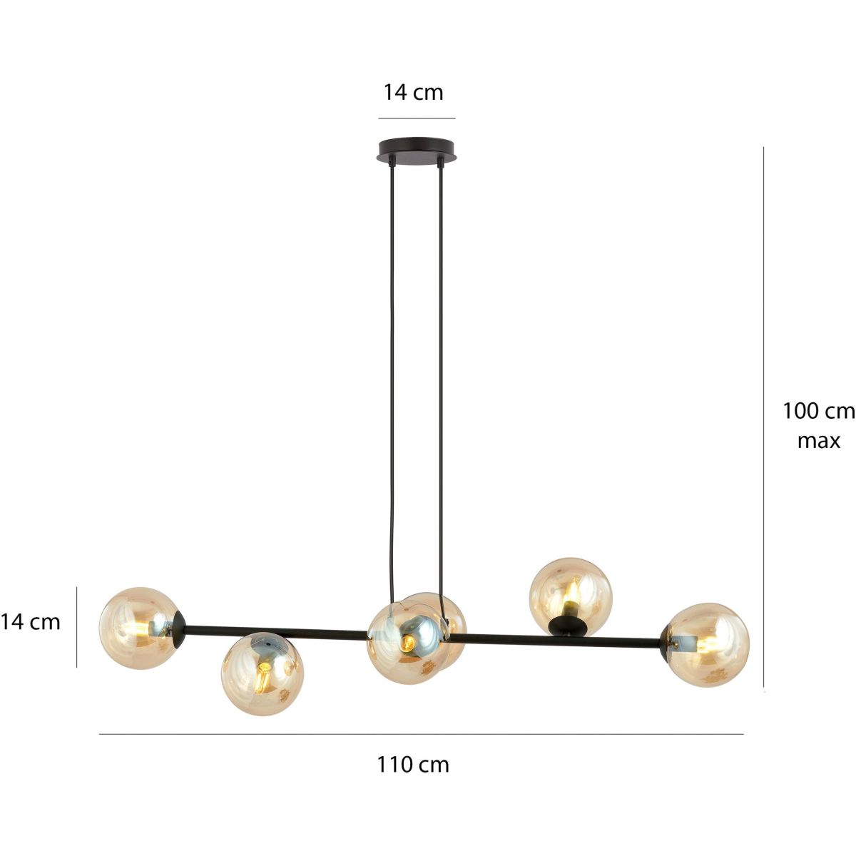 Emibig Rossi Pendelleuchte 6x10 W schwarz-bernstein 876/6