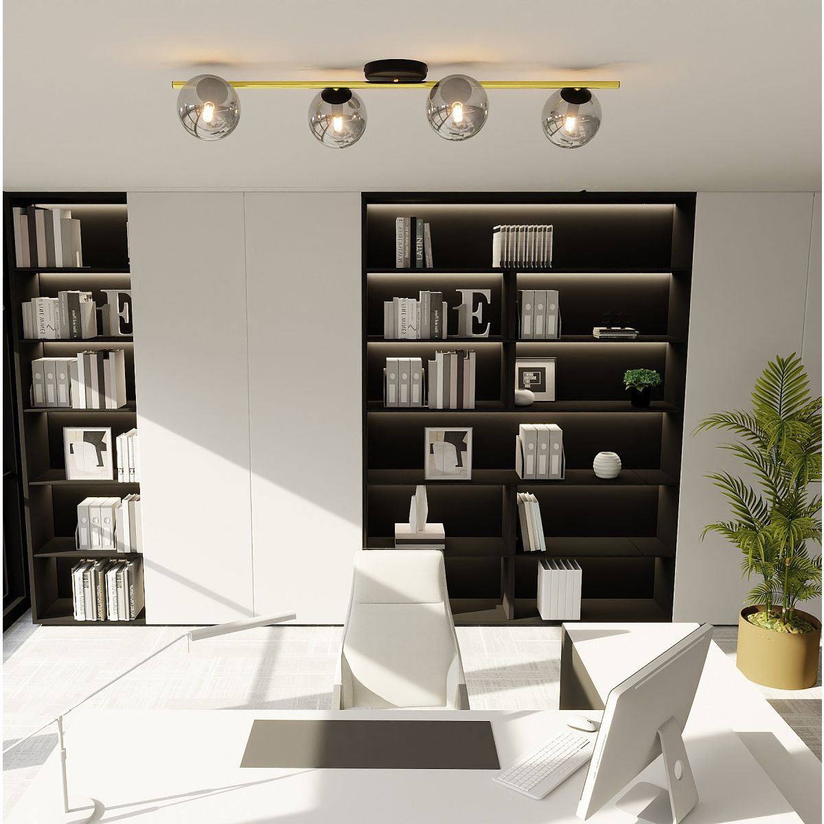 Die Deckenleuchte Splendi mit dekorativem goldenem Rohr ist die perfekte Wahl für alle, die eine Leuchte suchen, die zu jedem Raum passt. Durch ihre Konstruktion eignet sie sich ideal für Räume mit niedriger Deckenhöhe. Die dekorativen goldenen Elemente im Glamour-Stil verleihen der Serie zusätzlichen Charme und machen die Leuchte eleganter und moderner. Sie lässt sich leicht in jede Einrichtung integrieren, unabhängig vom Stil des Raumes. Die Splendi-Serie ist auch ein sehr funktionales Produkt, das aus hochwertigen Materialien hergestellt wird, was die Haltbarkeit und Langlebigkeit des Produkts gewährleistet. Erhältlich in Weiß oder Schwarz, für 2, 3 oder 4 Lichtquellen. Das Produkt ist zu 100 % polnisch.