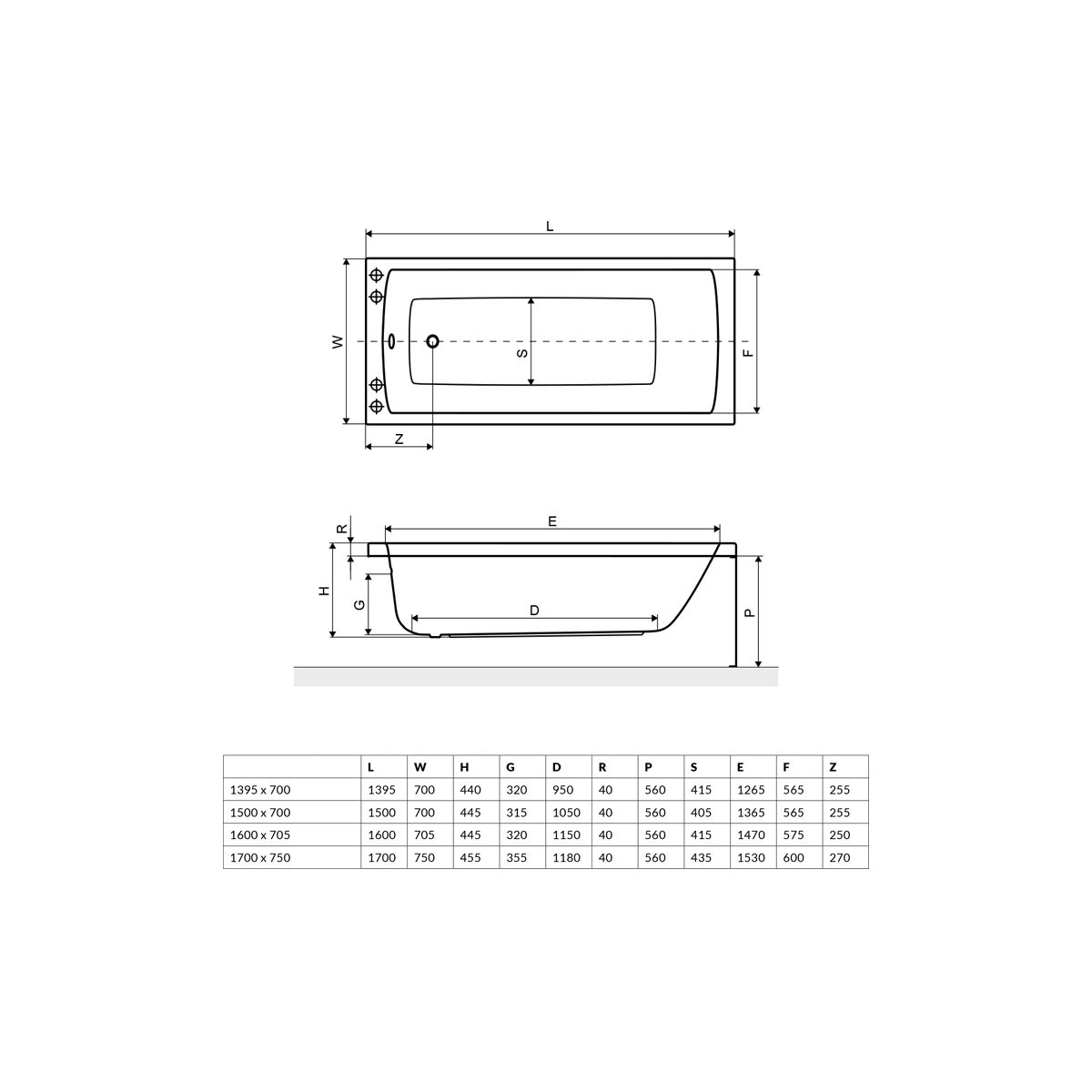 - Fassungsvermögen der Wanne bis zum Überlauf: 180 Liter