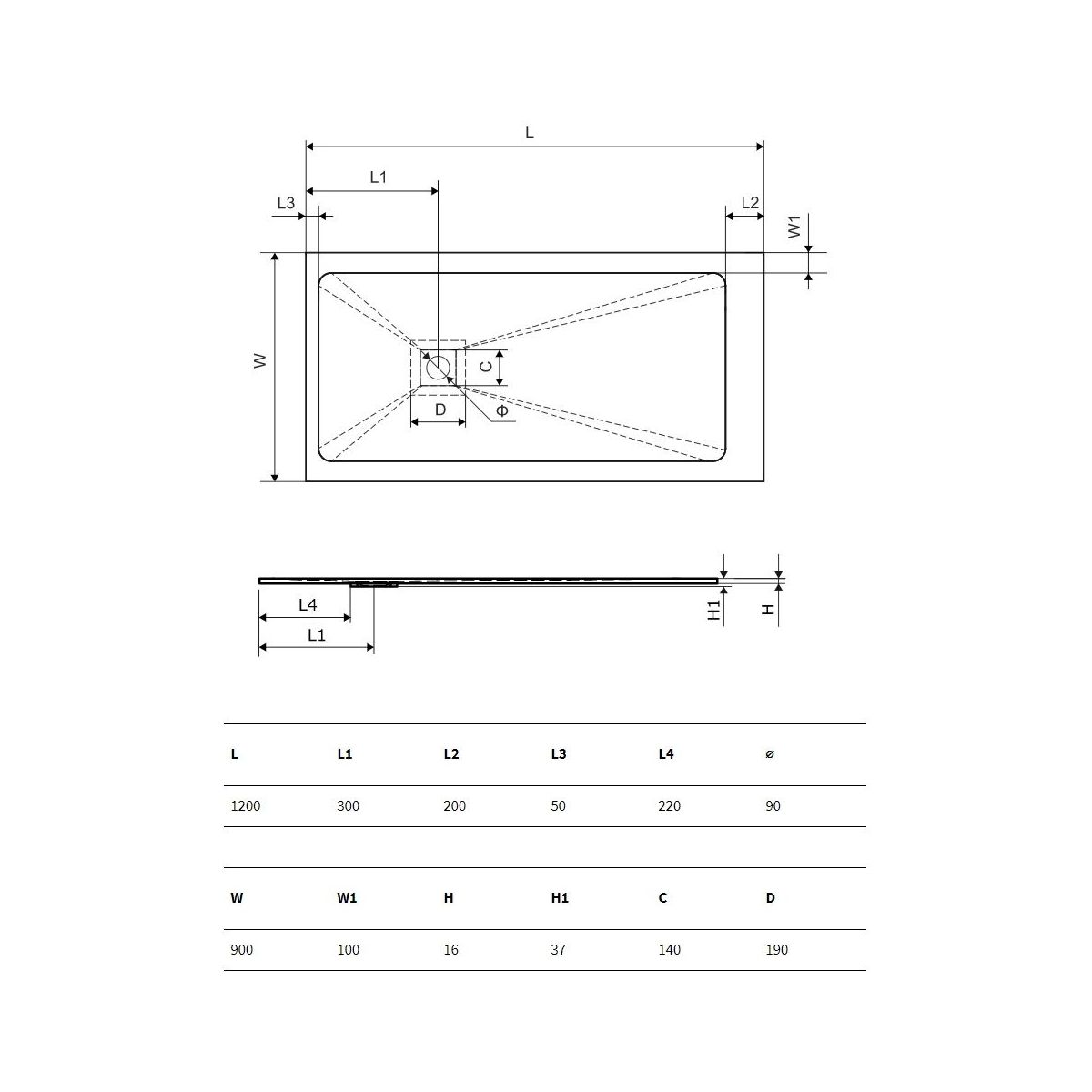 Excellent Arda Rechteckige Duschwanne 120x90 cm beton BREX.1503.120.090.CON