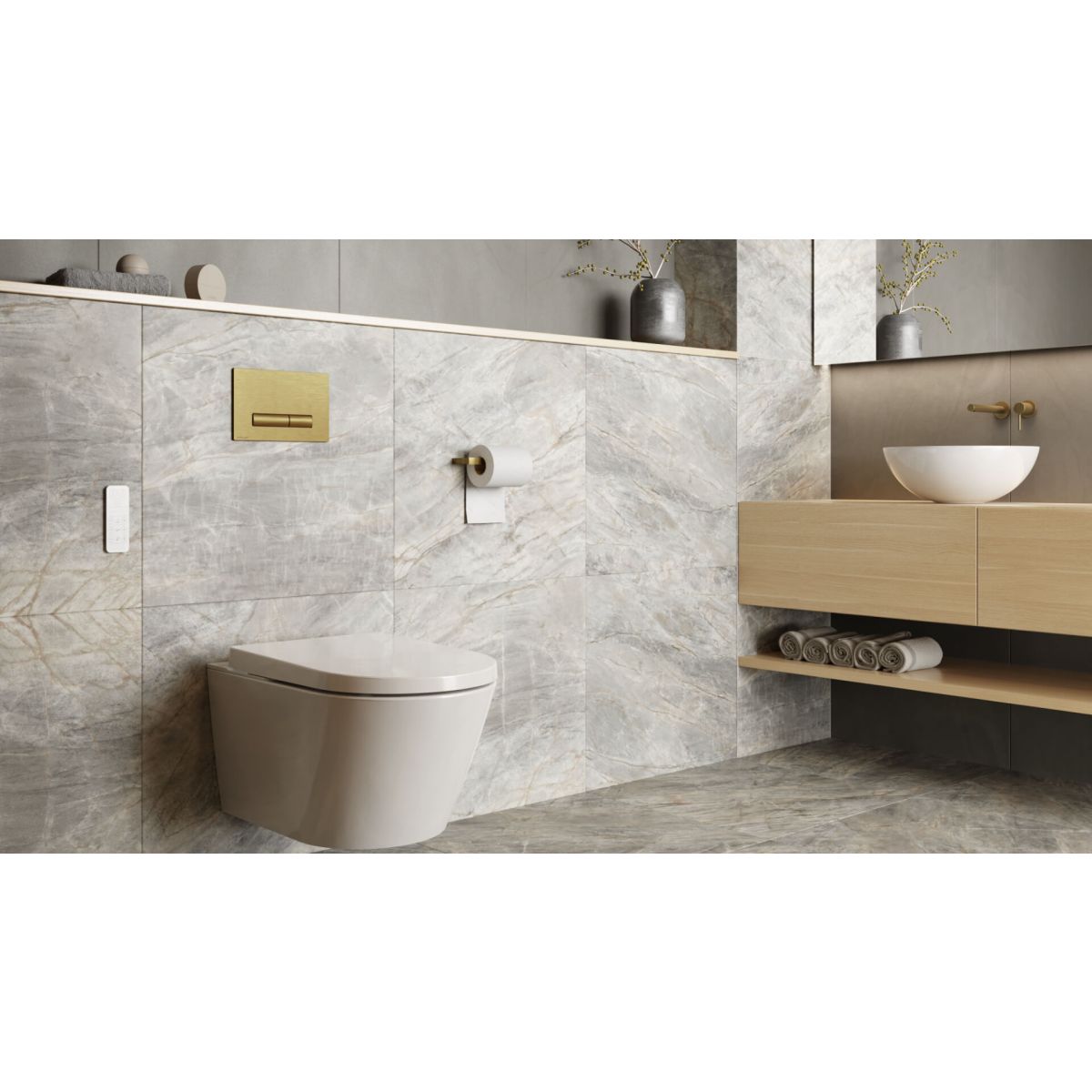 Aurro ist ein Spülknopf für Toiletten mit mechanischem Spülsystem. Er hat eine klassische, elegante Form, und seine weichen, abgerundeten Formen passen hervorragend zu den anderen Produkten im Badezimmer. Dank der entsprechenden Formgebung der Knöpfe ist die Bedienung äußerst komfortabel. Aurro besteht aus Kunststoff und verfügt über zwei Tasten für die sparsame und vollständige Spülung, die durch Drücken von vorne betätigt werden. Das Produkt ist für den Unterputzrahmen für Shiro 2.0-WC-Becken vorgesehen, der über einen Mechanismus verfügt, mit dem der Spülbereich von den Standardwerten 3/6 l auf einen sparsamen und umweltfreundlichen Wert von 3/4,5 l umgestellt werden kann. Der Knopf wurde so minimalistisch wie möglich gestaltet, sodass das gesamte Gehäuse nur 6 mm über die Fliese hinausragt. Das Modell ist in den Farben Chrom, Gold glänzend, Weiß glänzend, Schwarz Soft, Gold gebürstet und Kupfer gebürstet erhältlich.