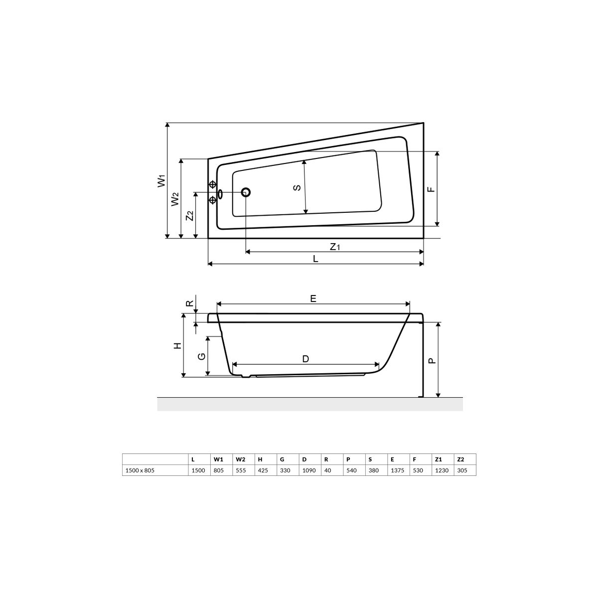 Excellent Ava Side Eckbadewanne 150x80.5 cm rechtsseitig weiß WAEX.AVP15WH