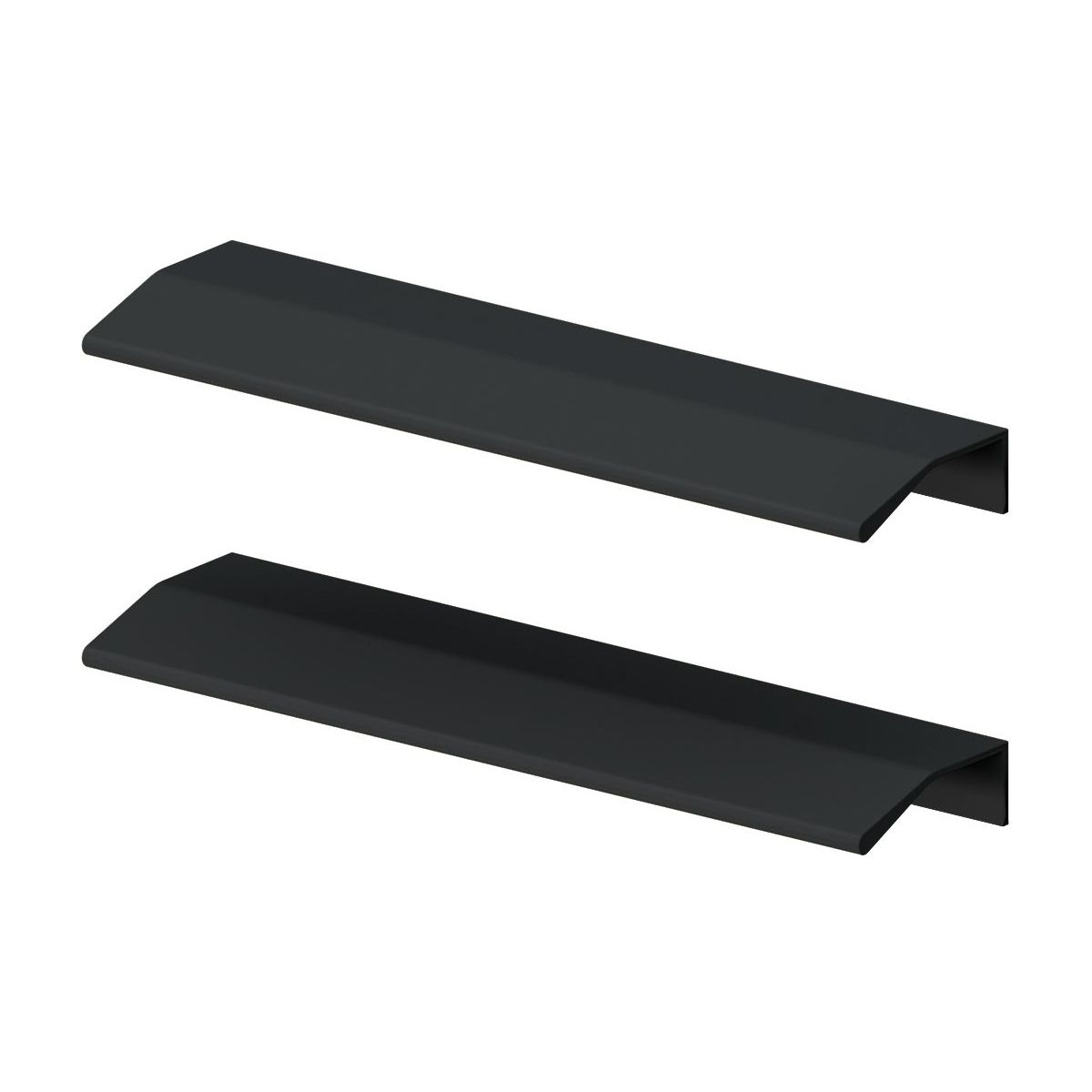 Im Set enthalten sind 2 mattschwarze Aluminiumgriffe für den Badezimmerschrank unter dem Waschbecken der Serie Blanko.