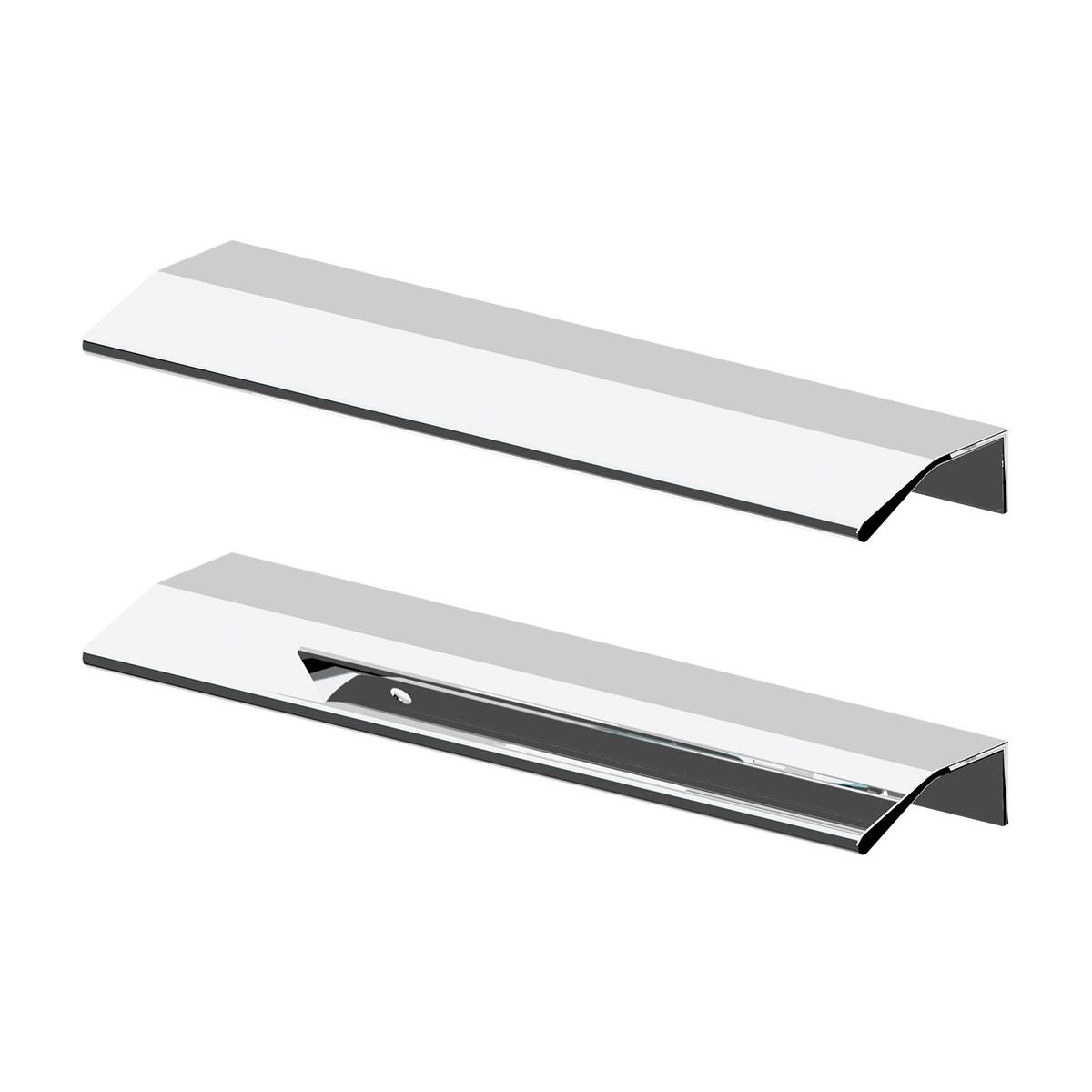 Im Set enthalten sind 2 Aluminiumgriffe in Chromfarbe für den Badezimmerschrank unter dem Waschbecken der Serie Blanko.