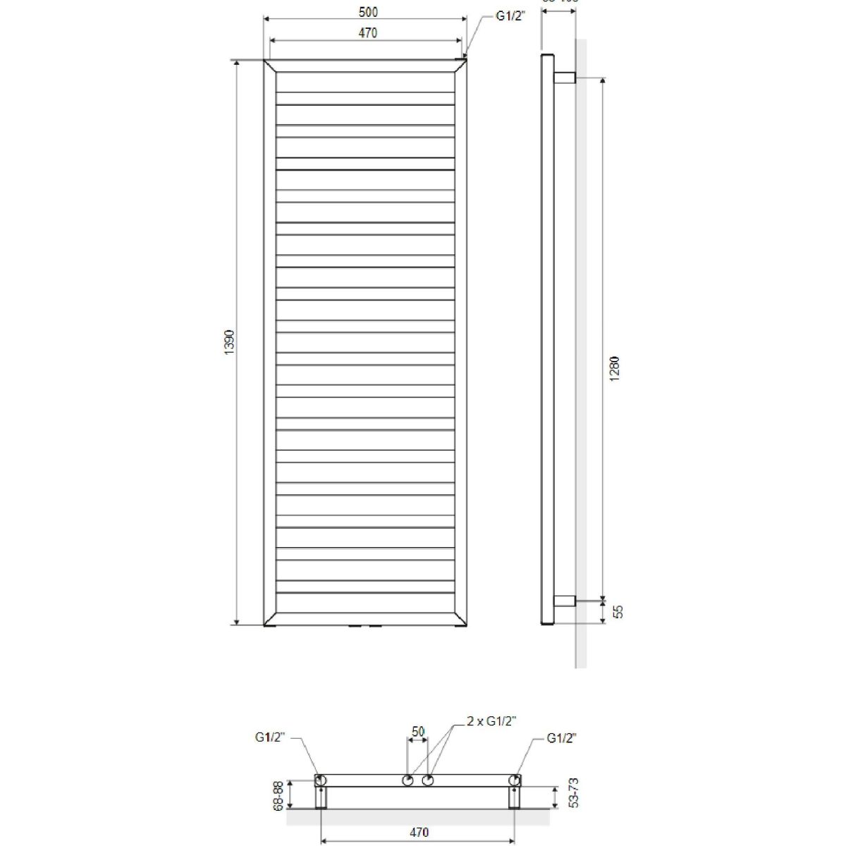 Brego ist ein Badheizkörper, der für Kunden entwickelt wurde, die die Funktionalität des Produkts in Verbindung mit einem klassischen Design schätzen. Dank der dichten Anordnung der Profile hat dieser Heizkörper im Vergleich zu anderen Modellen mit ähnlichen Abmessungen eine relativ hohe Wärmeeffizienz. Brego ist mit Anschlüssen ausgestattet, die sowohl einen unteren mittleren Anschluss (50 mm) als auch einen unteren seitlichen Anschluss an den Kollektoren (470 mm) ermöglichen. Der Heizkörper kann mit einem elektrischen Heizelement ausgestattet werden. Der Heizkörper ist in drei Größen und drei Farben erhältlich: mattweiß (RAL 9003), matt schwarz mit feiner Struktur (RAL 9005) und cappuccino mit strukturierter Oberfläche (RAL ähnlich 1019).