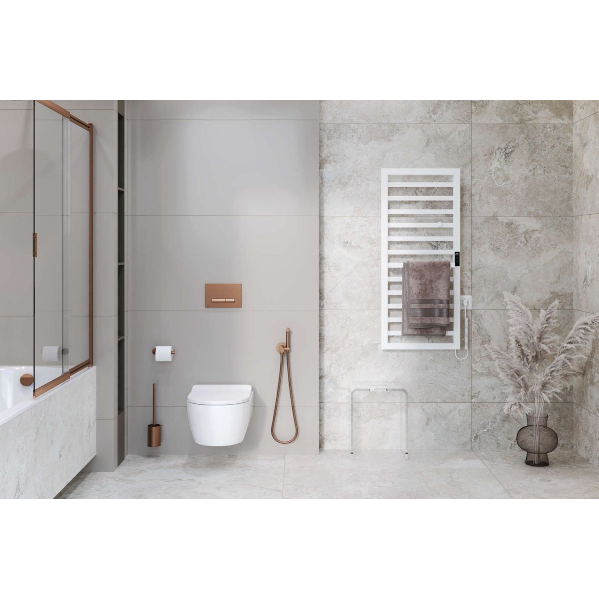 Brego Smart ist die ideale Lösung für kleine und mittelgroße Badezimmer mit einer Fläche von bis zu 6 m², die auch ohne Fußbodenheizung für angenehme Wärme sorgen. Da kein Anschluss an die Zentralheizung erforderlich ist, ist das Produkt leicht und einfach zu installieren. Es ist in den Größen 91 x 50 cm und 115 x 50 cm sowie in drei stilvollen Farben erhältlich: Mattschwarz, Mattweiß und Cappuccino.