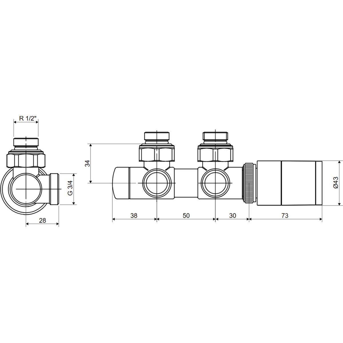 Excellent Caldo Kombiniertes Thermostatventil chrom GREX.CA50.L.ZT.CR