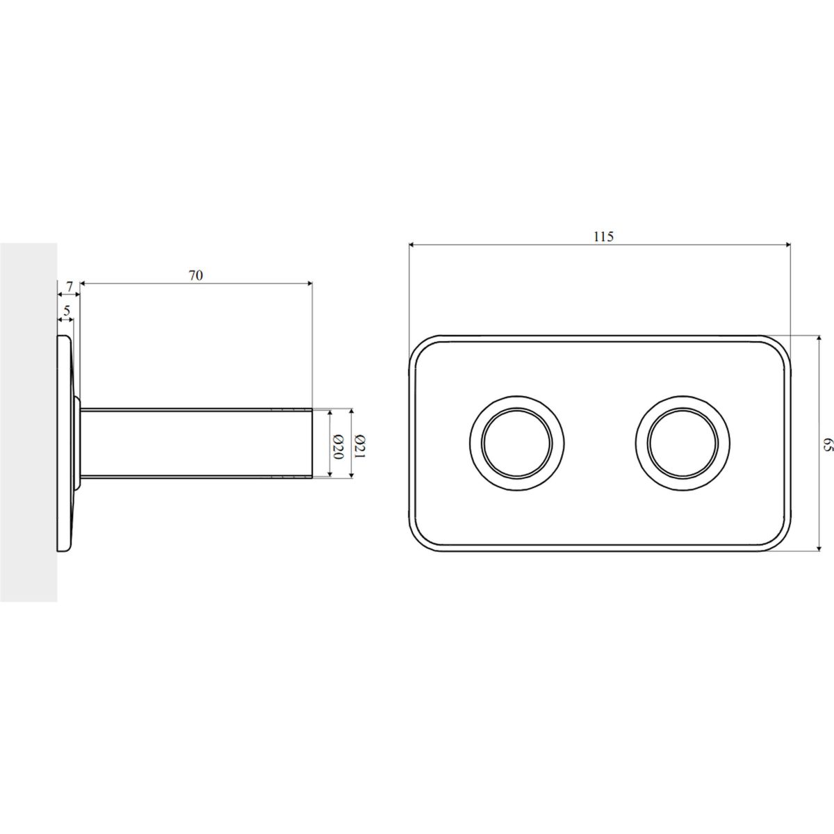 - 1 x rechteckige Doppelrosette (Öffnungen ¾” = Ø 25 mm)