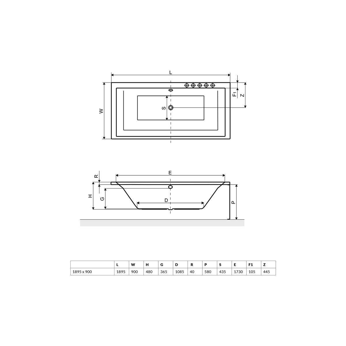 - Fassungsvermögen der Badewanne bis zum Überlauf: 265 Liter