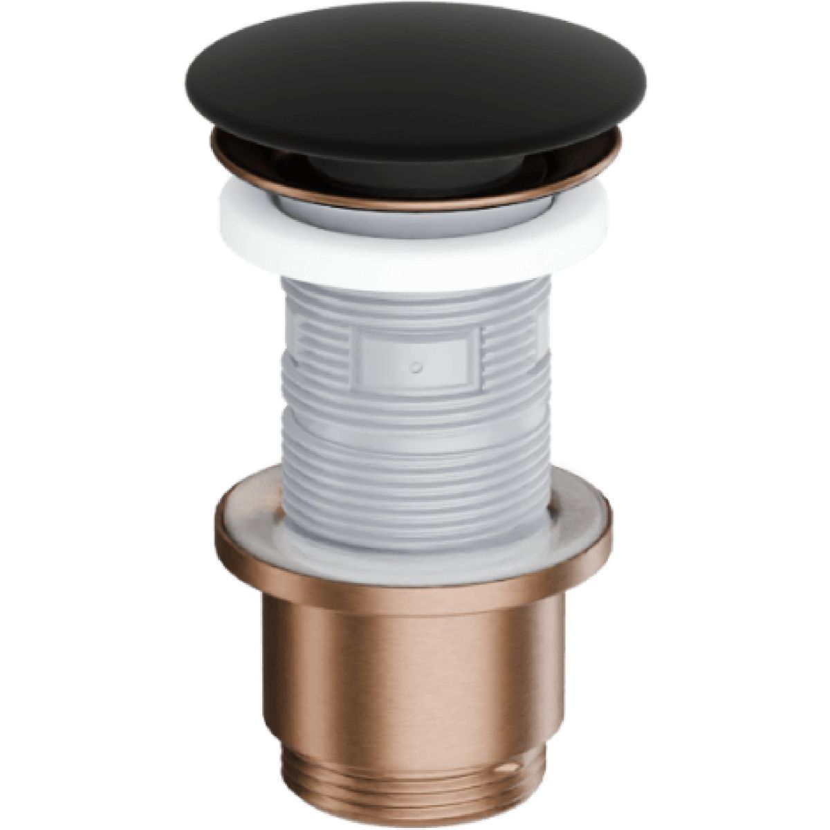 Design Klick-Klack-Waschbeckenstopfen, Körper aus gebürstetem Kupfer, schwarze Keramikabdeckung ARIN.1485.K.01.BLMCB