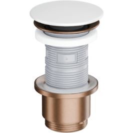 Design Klick-Klack-Waschbeckenablauf, gebürsteter Kupferkörper, mattweiße Keramikabdeckung ARIN.1485.K.01.WHMCB
