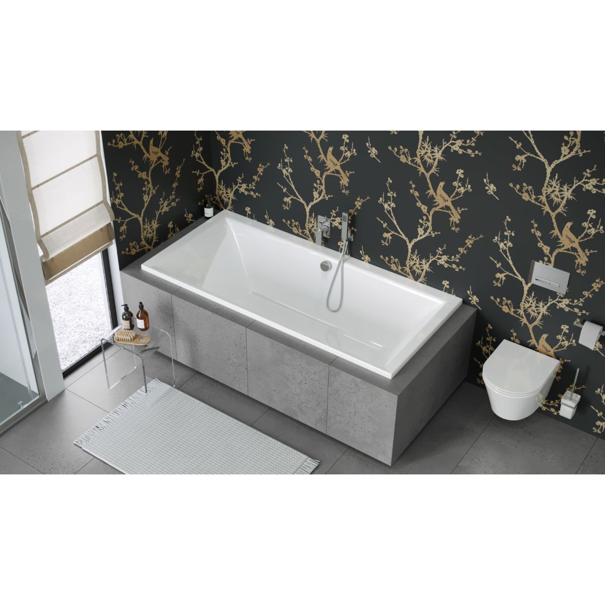 - Befüllung über den Überlauf: Eine speziell entwickelte Rosette ermöglicht eine effiziente Befüllung der Badewanne mit Hilfe eines Perlators.
