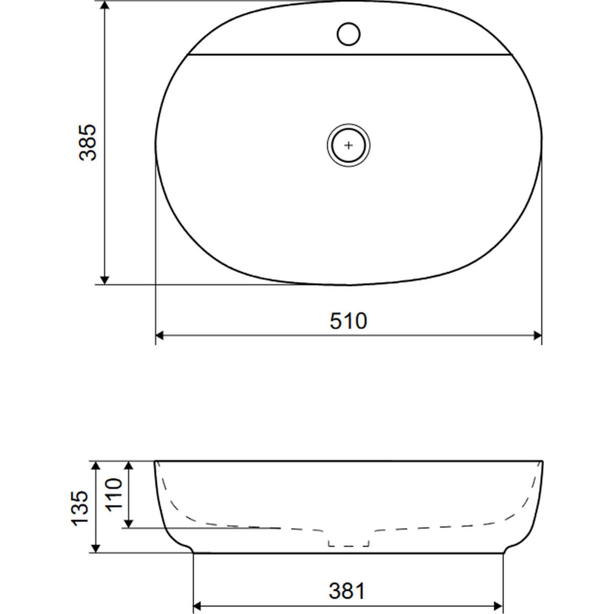 Jima Waschtischaufsatz 51x38 cm oval mit Loch für Wasserhahn, weiß glänzend CEAC.2002.510.WH