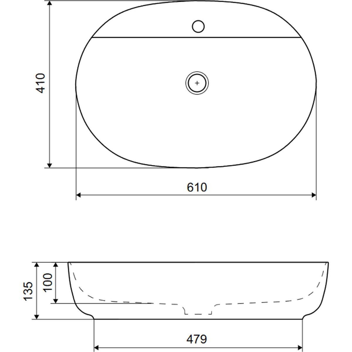 Jima Waschtischaufsatz 61x41 cm oval mit Loch für Wasserhahn, weiß glänzend CEAC.2002.615.WH