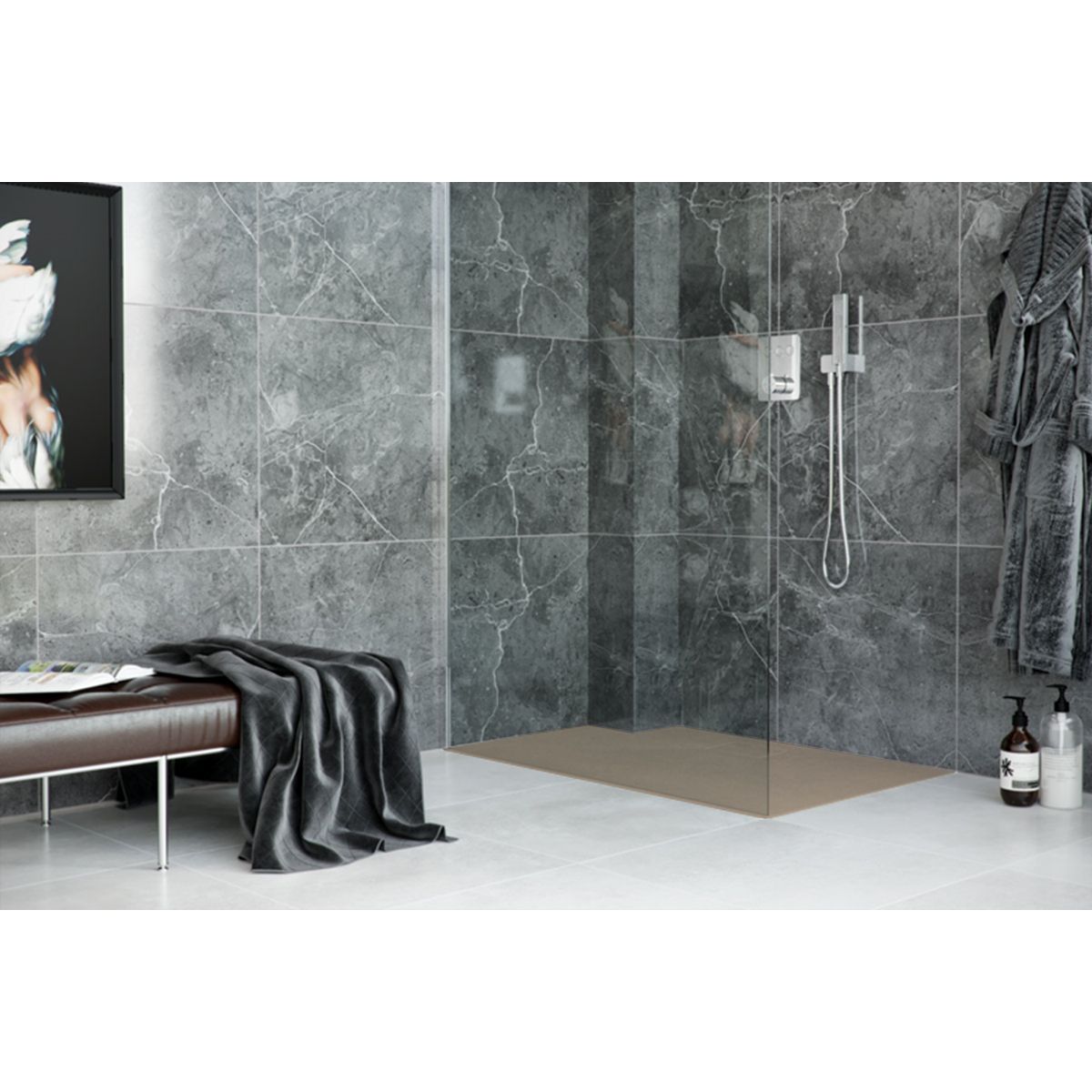 - Die Duschwanne besteht aus einer Lite Mineral-Trägerschicht, die Mineralverbundstoffe enthält. Die Trägerschicht ist mit dem Polymerverbundstoff EnaCoat beschichtet