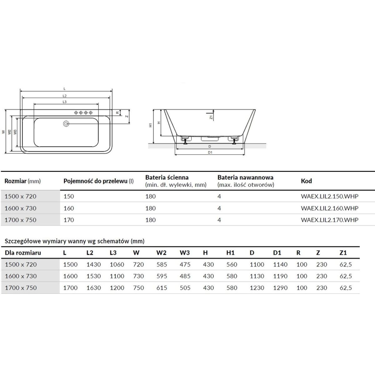 Excellent Lila 2.0 Wandmontierte Badewanne 150x75 cm rechteckig weiß WAEX.LIL2.150.WHP