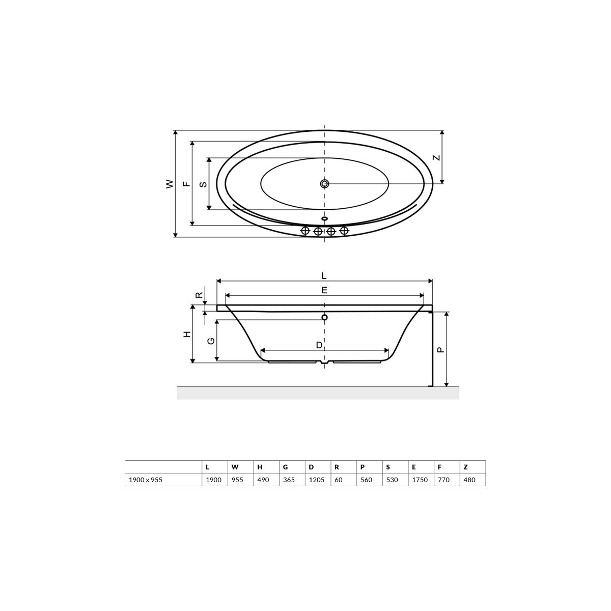 Excellent Lumina Ovale Badewanne 190x95.5 cm oval weiß WAEX.LUM19WH