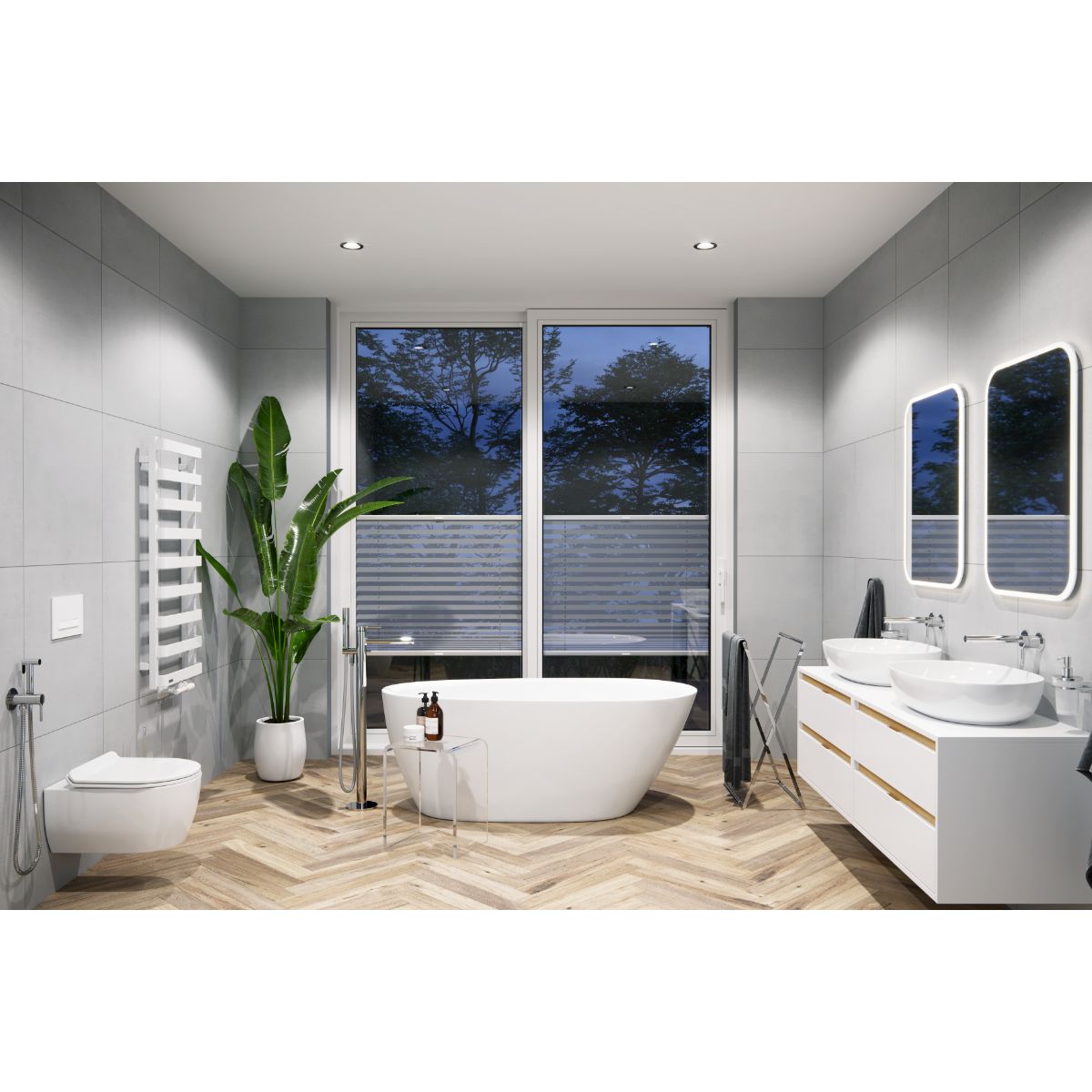 Lumiro ist ein Badezimmerspiegel aus hochwertigem Spiegelglas (mit einer reflektierenden Silberschicht beschichtet) mit LED-Beleuchtung und stufenloser Farbtemperaturregelung im Bereich von 3000 bis 6000 K. Die Beleuchtung ist unter einem Acrylrahmen versteckt, der für eine gleichmäßige Lichtstreuung ohne sichtbare LED-Punkte sorgt.