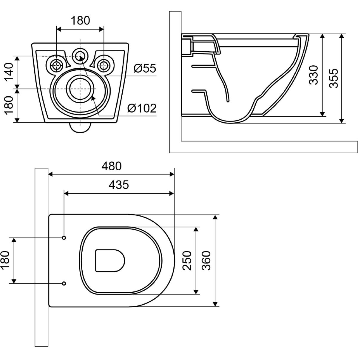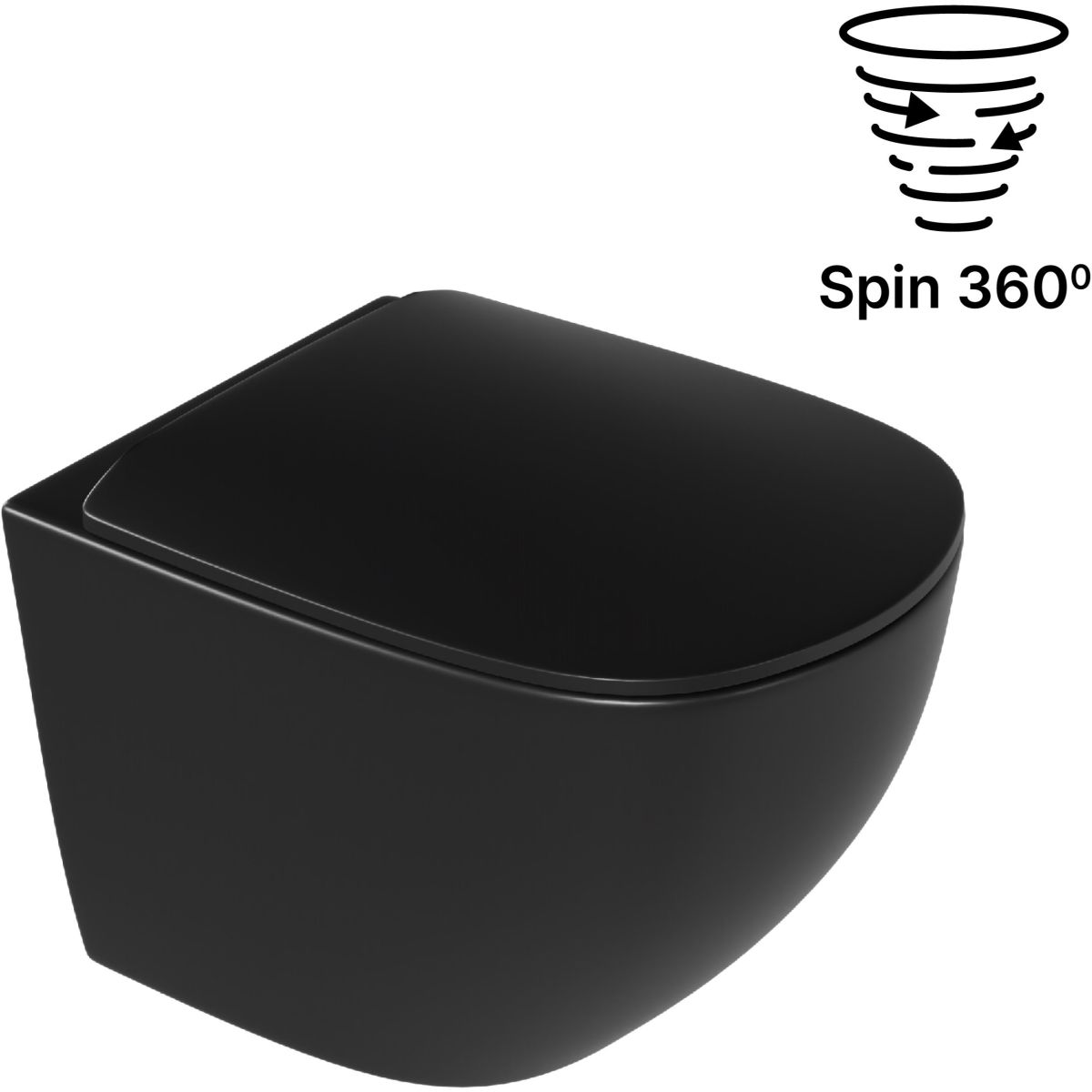 Luqa WC-Becken 48 cm, wandhängend, randlos, mattschwarz, mit Spin 360-Spülsystem CEAC.6403.480.BLM
