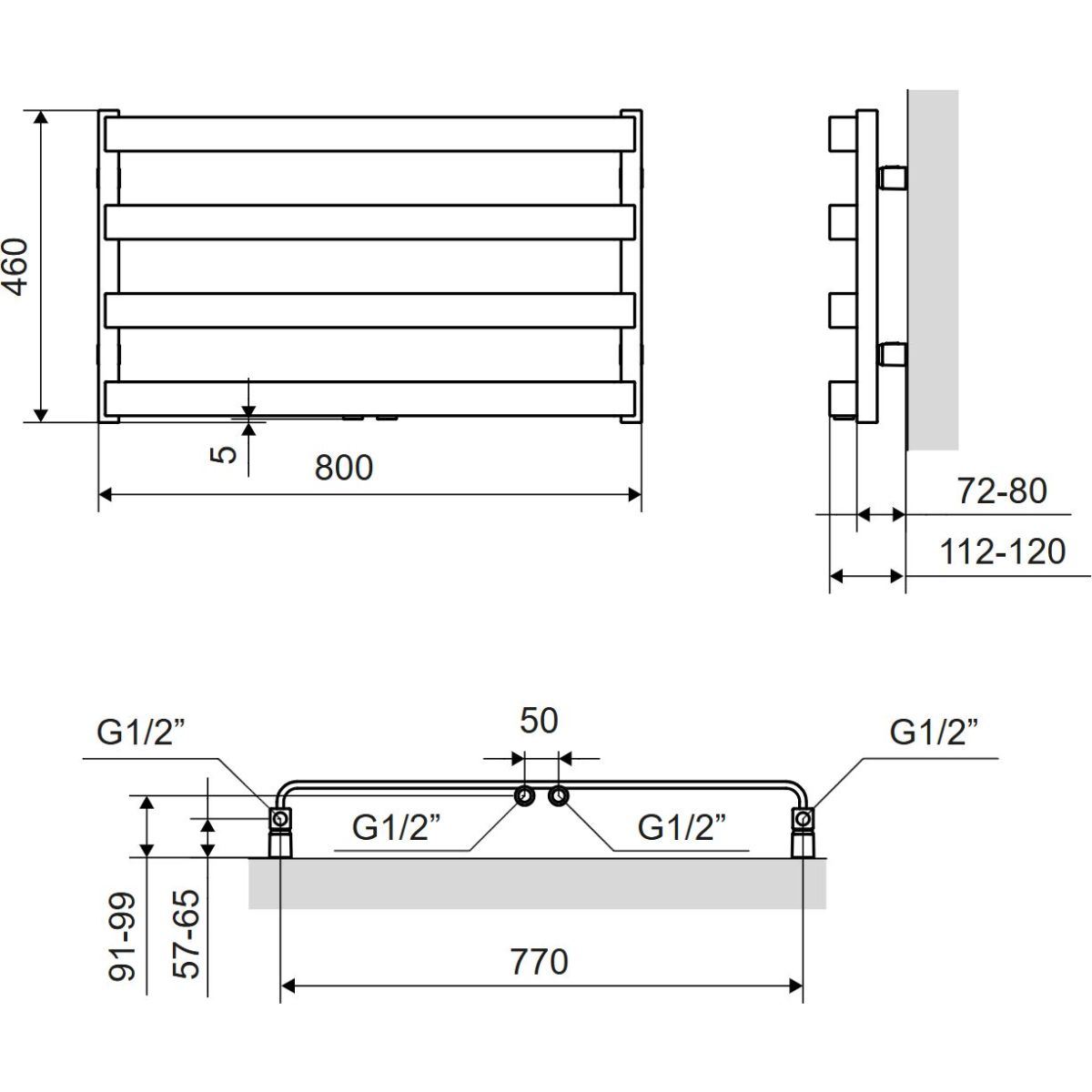 Der Heizkörper hat breite, flache Profile, die in gleichem Abstand voneinander und senkrecht zu den Kollektoren angeordnet sind. Dank der charakteristischen C-förmigen Biegung der Profile erhalten wir eine Form, die ein einfaches Aufhängen von Textilien zum Trocknen ermöglicht. Meteor eignet sich daher perfekt als Handtuchtrockner.