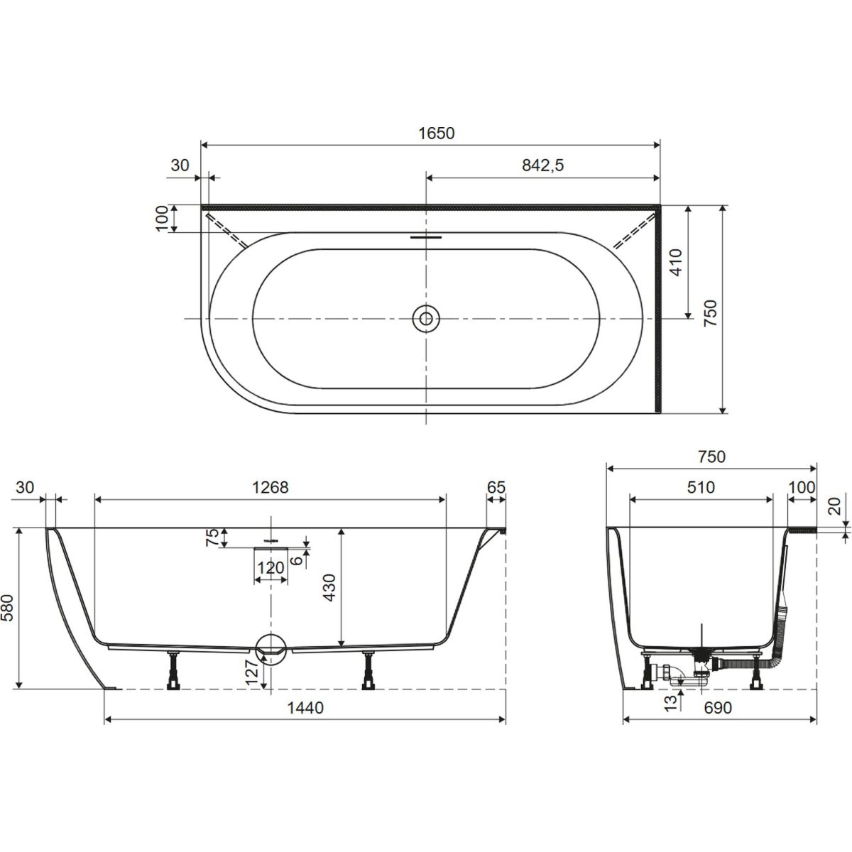 Sie besteht zu 100 % aus Sanitäracryl. Erhältlich in 3 Ausführungen: wandseitig, rechts eckig und links eckig. Badewanne mit integrierter Verkleidung und zusätzlich verstärktem Rand, der die Montage einer Badewannenarmatur ermöglicht.