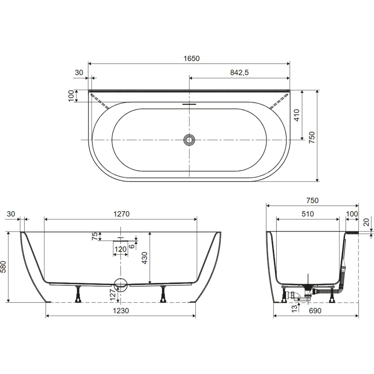 Sie besteht zu 100 % aus Sanitäracryl. Erhältlich in 3 Ausführungen: wandseitig, rechts eckig und links eckig. Badewanne mit integrierter Verkleidung und zusätzlich verstärktem Rand, der die Montage einer Badewannenarmatur ermöglicht.