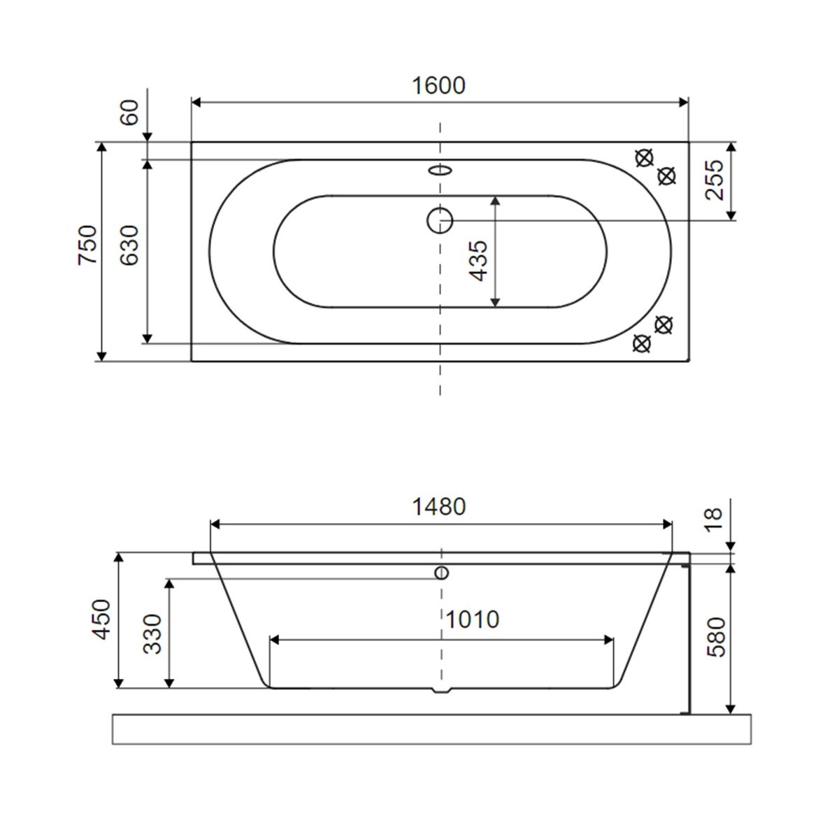 Excellent Oceana Schlanke rechteckige Badewanne 160x75 cm WAEX.OCE16ANMS