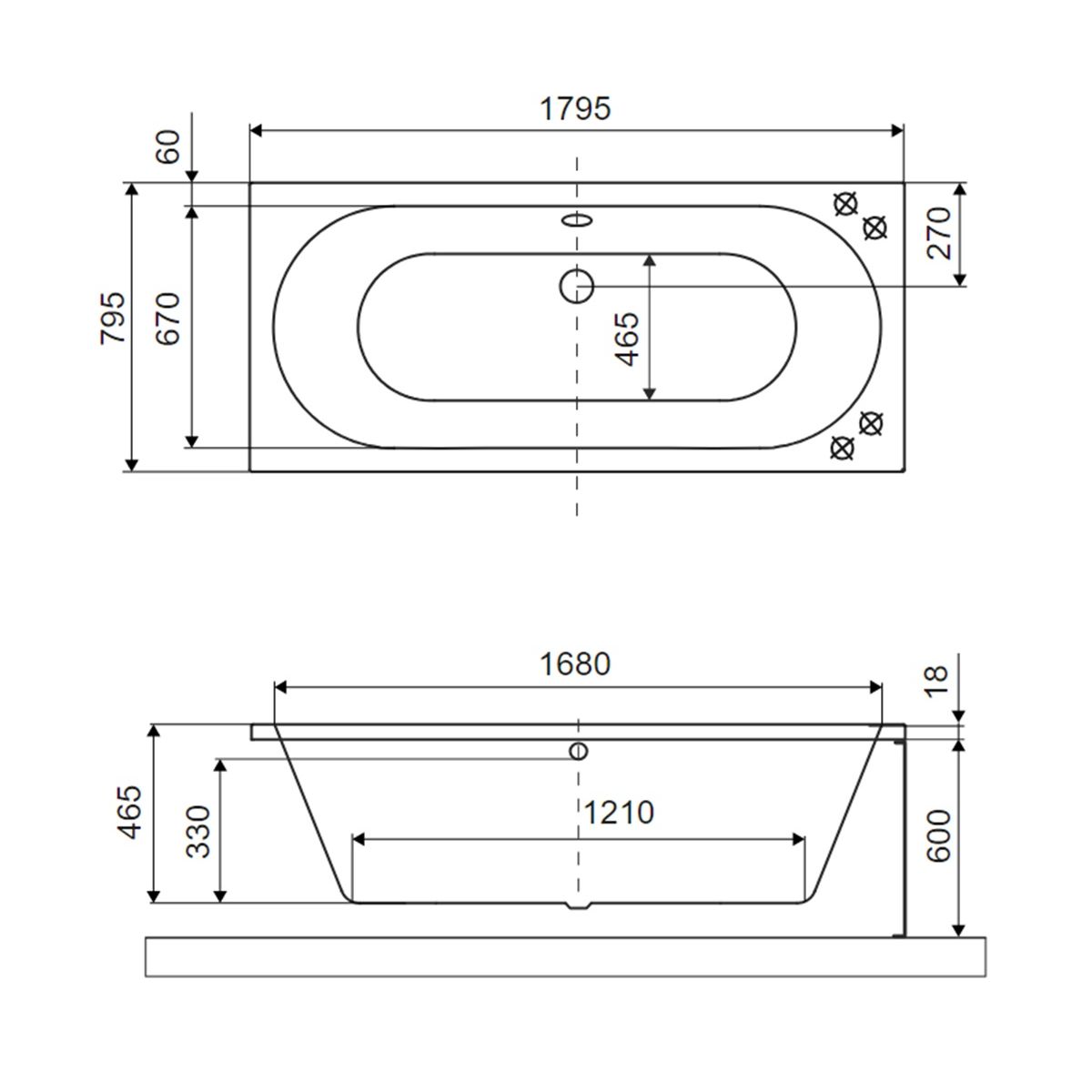 Excellent Oceana Schlanke rechteckige Badewanne 180x80 cm WAEX.OCE18GRMS