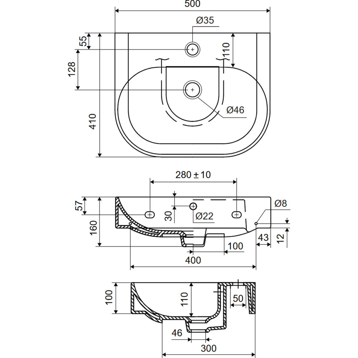 Das Waschbecken ist mit einer Öffnung für den Wasserhahn und einem Überlauf ausgestattet, was Komfort und Sicherheit gewährleistet. Die glatte, glänzende Oberfläche sieht schön aus und erleichtert die tägliche Reinigung. Das Waschbecken kann sowohl als Aufsatzwaschbecken als auch als Hängewaschbecken montiert werden, was mehr Flexibilität bei der Gestaltung des Badezimmers bietet.