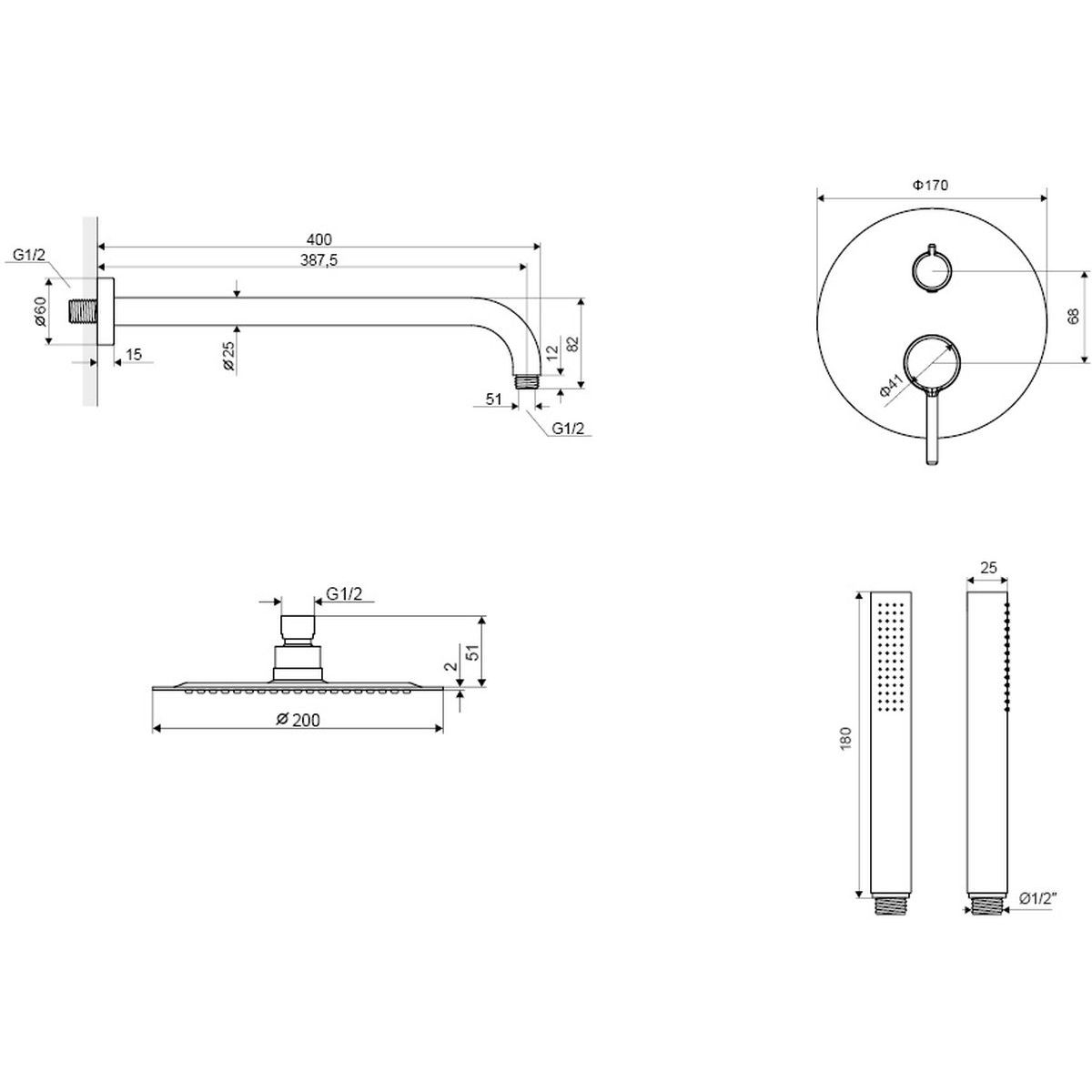 - Regenduschkopf mit einem Durchmesser von 20 cm