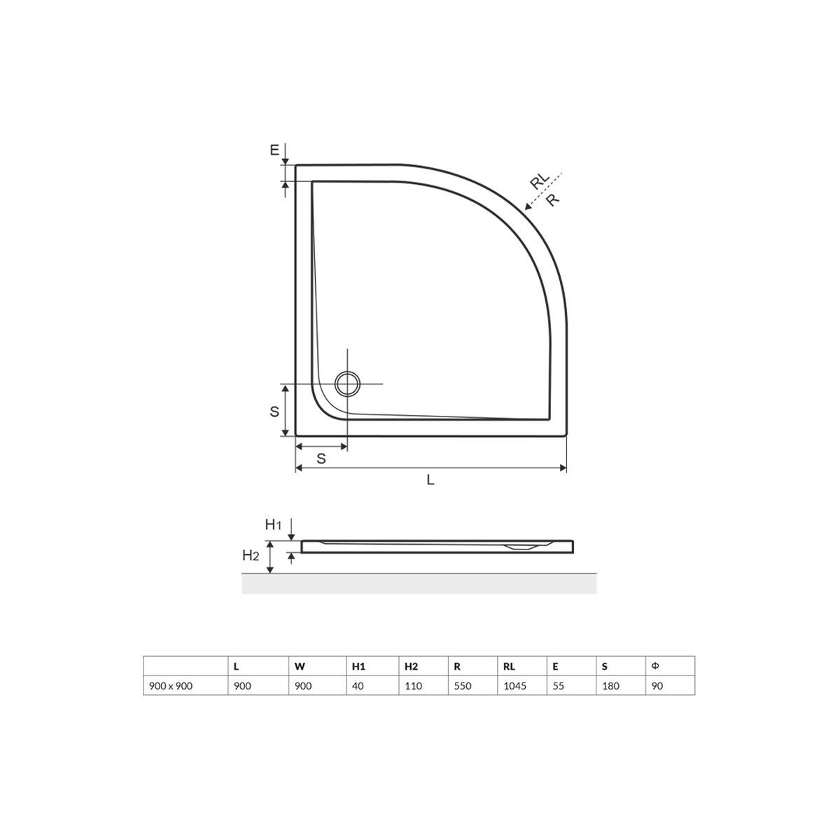 Excellent Sense Halbrunde Duschwanne 90x90 cm weiß BREX.SEN09WHN