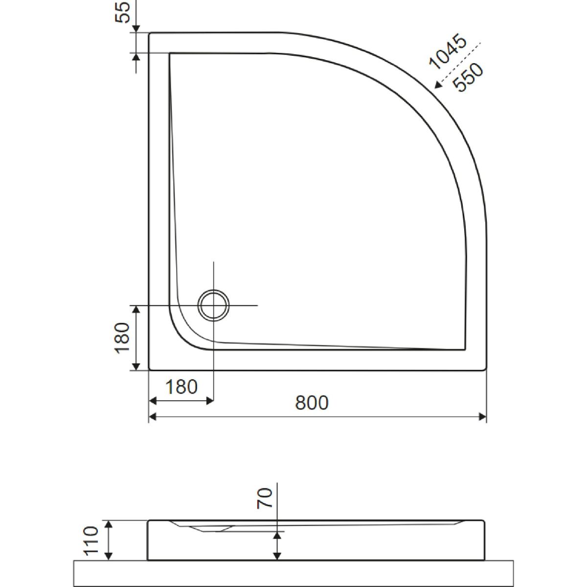 - Größe der Duschwanne: 80 x 80 x 11