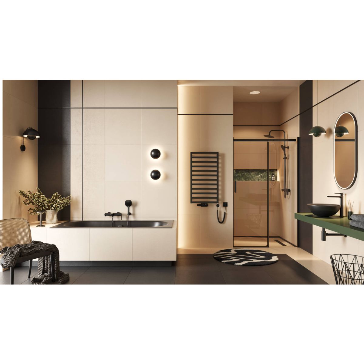 Im Lieferumfang der Stilio-Abläufe ist ein dekorativer Rost in Mattschwarz enthalten. Es ist auch eine Version mit einem Rost zum Verlegen von Fliesen erhältlich. Der Ablauf ist für Fliesen mit einer Standarddicke von 8-12 mm geeignet.