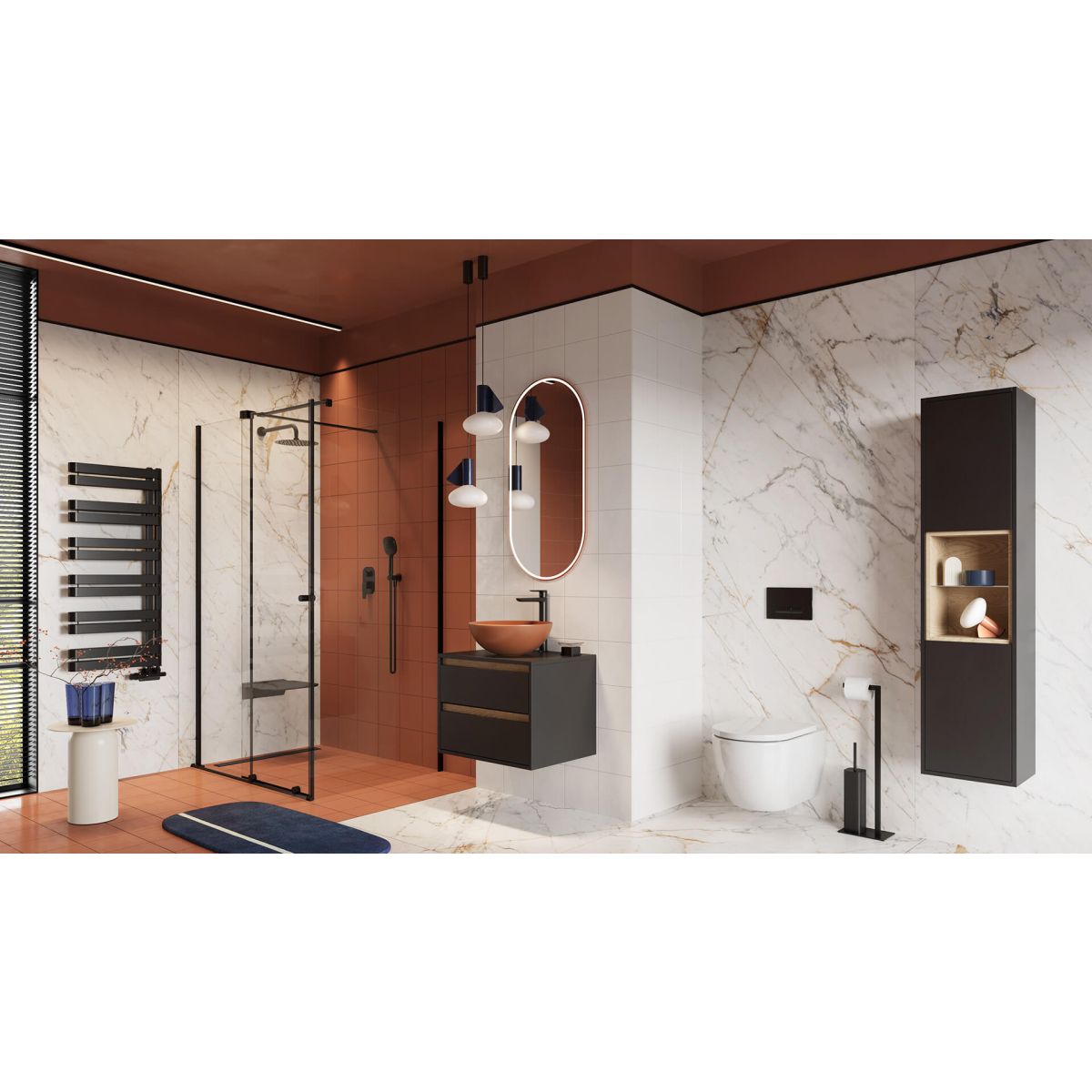Die Stilio-Linear-Ablaufrinne ist aus hochwertigem Edelstahl gefertigt und mit einer PVD-Beschichtung in gebürstetem Graphit versehen. Die Ablaufrinne verfügt über eine praktische vertikale und horizontale Verstellbarkeit der Füße im Bereich von bis zu 30 mm. Die große Auswahl an verfügbaren Abflussgrößen und Rostvarianten ermöglicht eine Anpassung an die Größe der Kabine und die Abmessungen der Fliesen, was die Planung des Layouts bereits in der Entwurfsphase erheblich erleichtert.