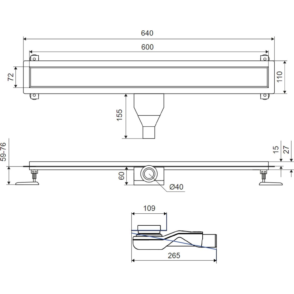 Excellent Stilio Linienablauf 60 cm INEX.1515.600.P.BL