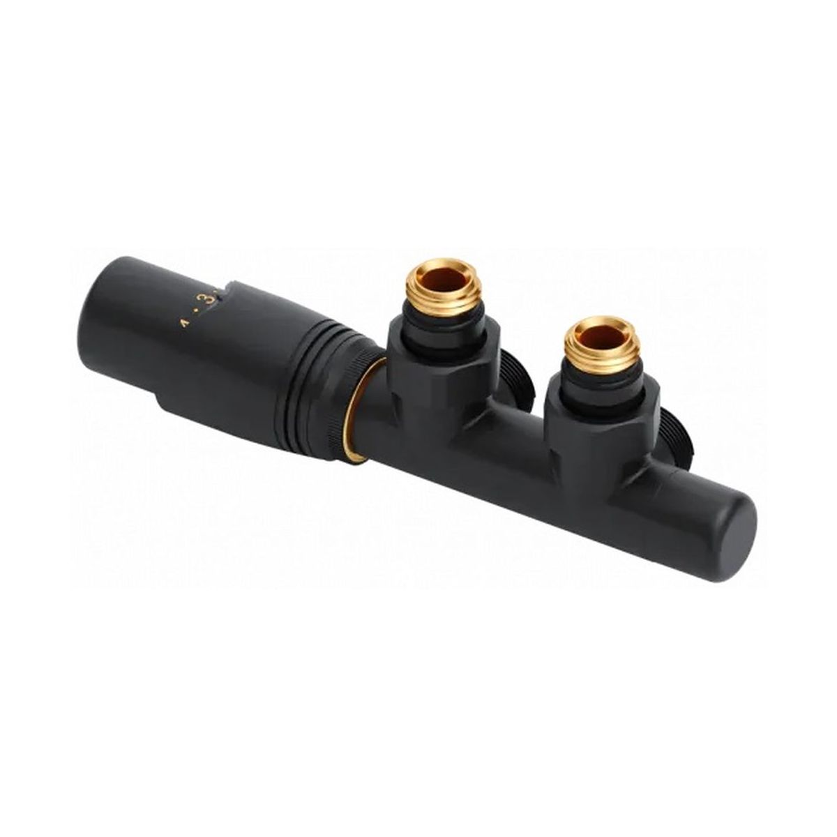 - Set für die Installation an Heizkörpern mit Anschluss unten in der Mitte und einem Anschlussabstand von 50 mm
