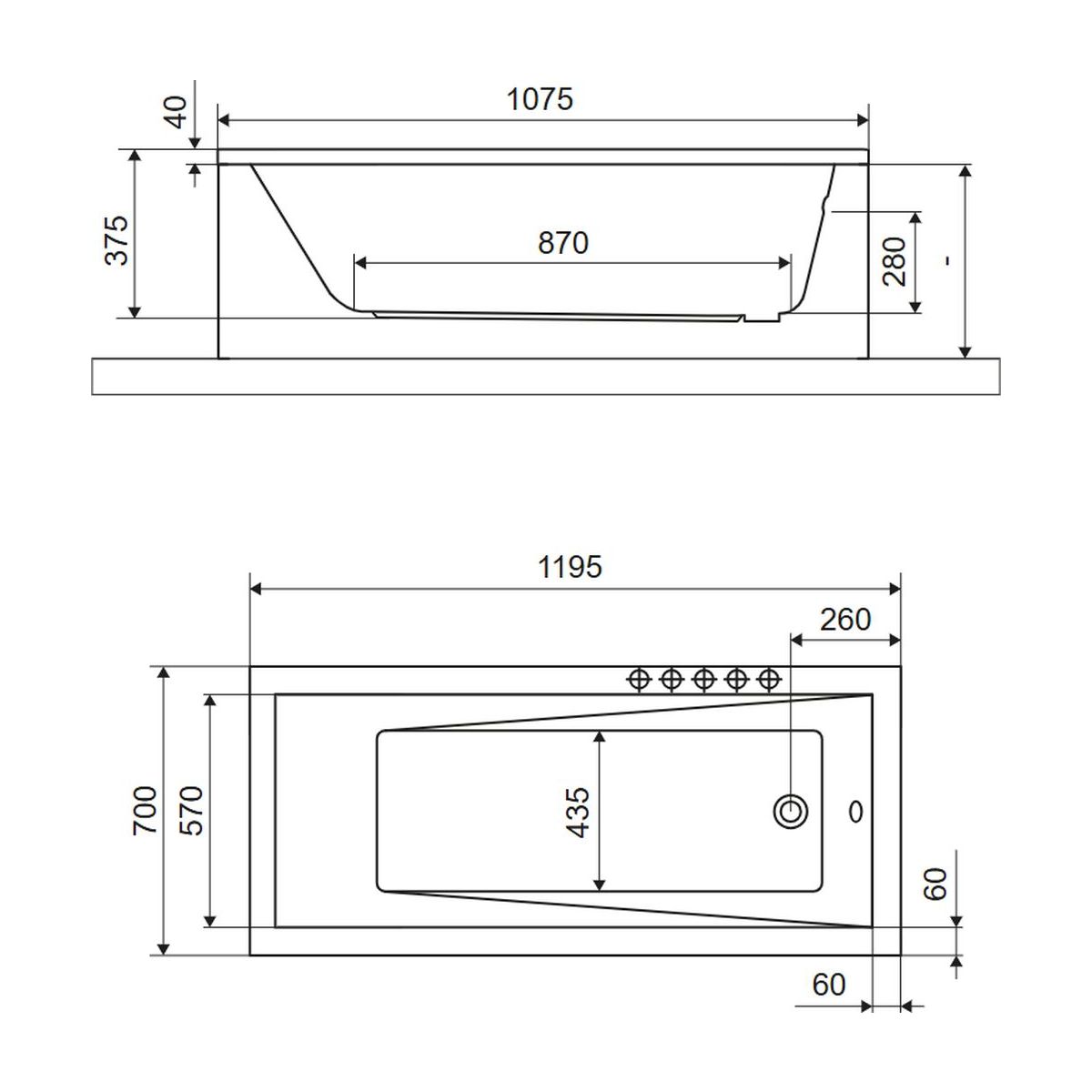 Excellent Wave Rechteckige Badewanne 120x70 cm weiß WAEX.WAV12WH