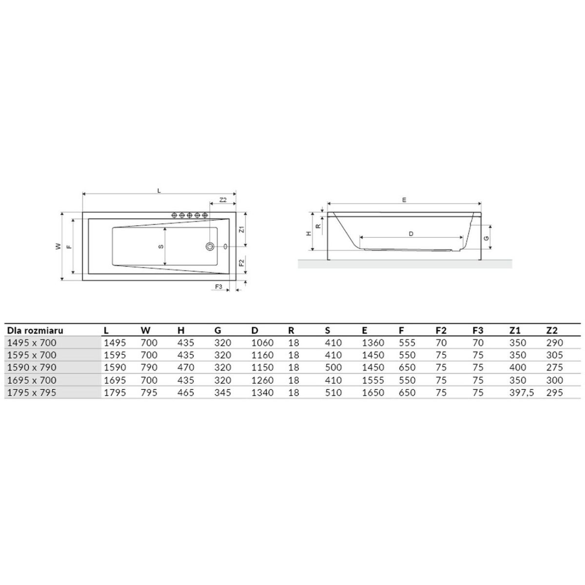 Excellent Wave Rechteckige Badewanne 169.5x70 cm weiß WAEX.WAV17WHS