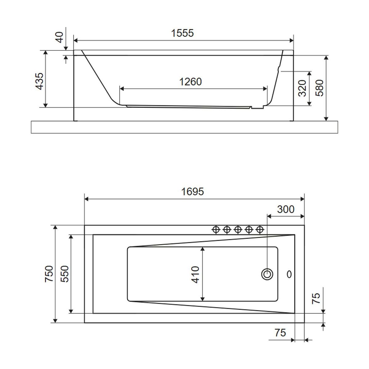 Excellent Wave Rechteckige Badewanne 170x75 cm weiß WAEX.WAV170.75WH