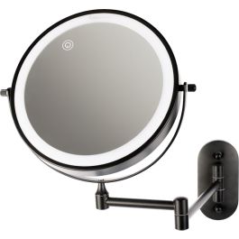 Faneco Como Black Kosmetikspiegel 20x20 cm rund mit Beleuchtung schwarz M200LBSBL