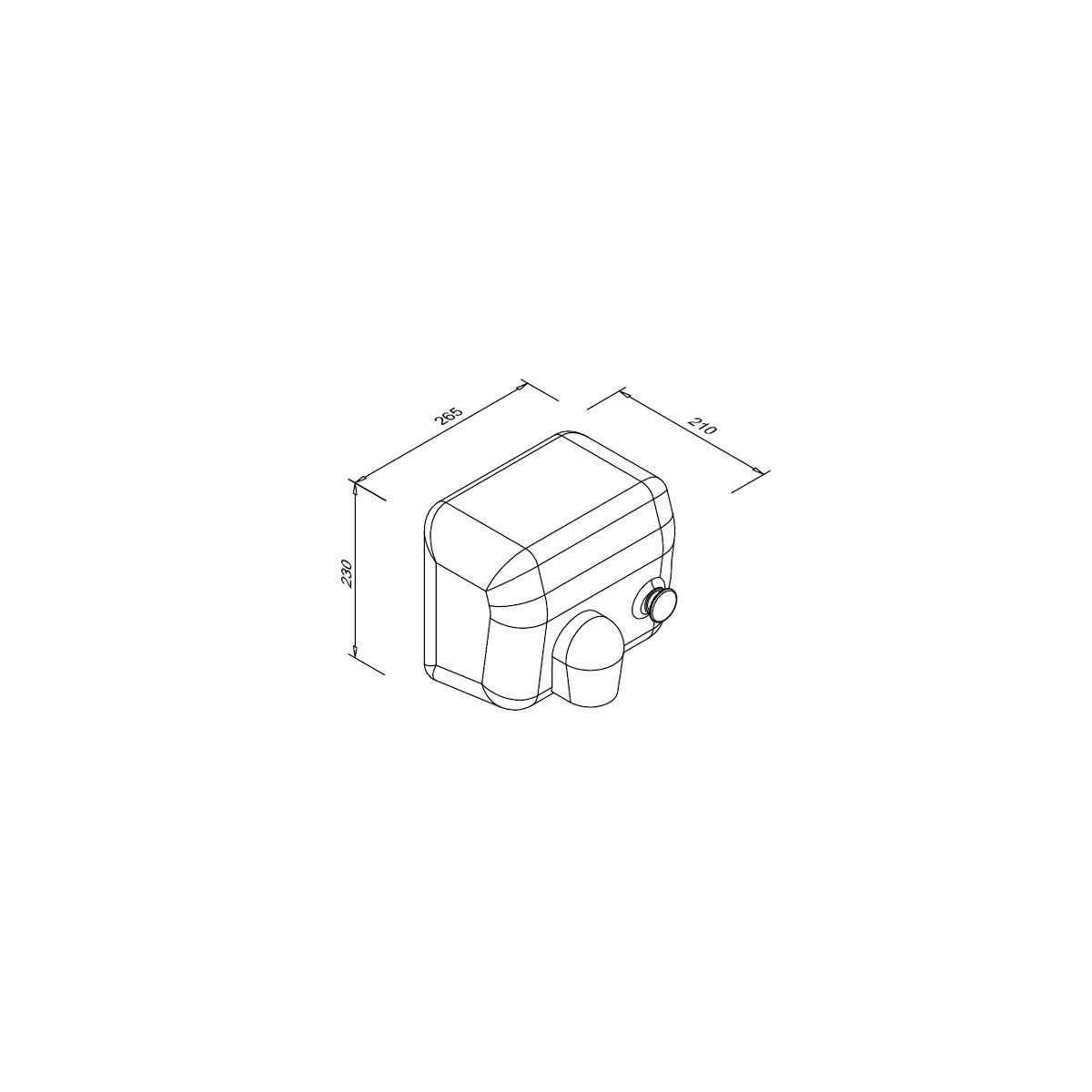 - Abmessungen des Trockners: Höhe 230 mm, Breite 265 mm, Tiefe 210 mm