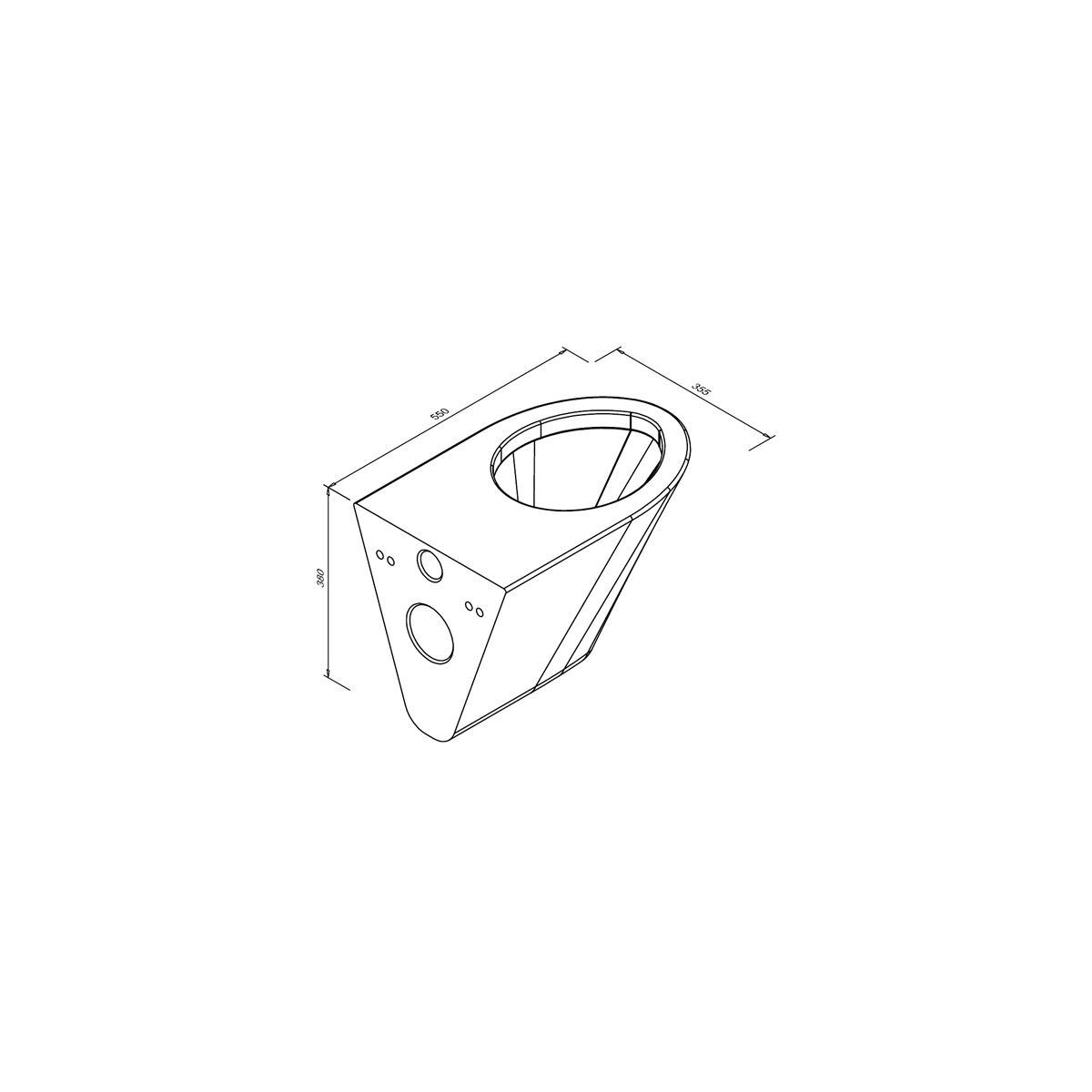 - Abmessungen der Schüssel: Höhe 380 mm, Breite 355 mm, Länge 550 mm