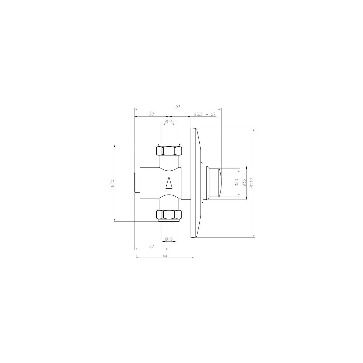 - Abmessungen des Ventils: Höhe 11,7 cm, Breite 11,7 cm, Tiefe 9,3 cm