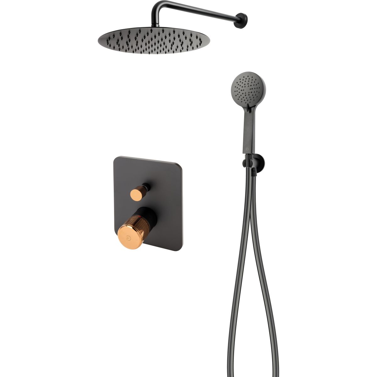 FDesign Ardesia Duschset Unterputz mit Regenbrause schwarz-gold FD1-ARD-7PSET1-25