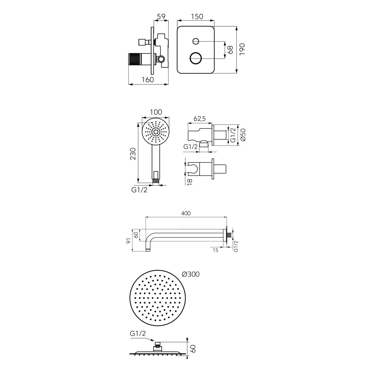 - Lieferumfang: Batterie mit Schalter, Duschkopf, Duschkopf, Duschschlauch, Eckanschluss
