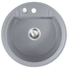 Die Einzelkammer-Spüle gehört zur eleganten Kollektion der Granitspülen. Ihre runde Form passt hervorragend in eine klassisch eingerichtete Küche. Sie eignet sich auch hervorragend für kleine Räume. Die schöne Oberfläche, die an die Struktur von Stein erinnert, und die graue Farbe passen perfekt zu einer Armatur in ähnlicher Farbe und zu Küchenaccessoires aus Metall. Sie ist äußerst langlebig und widerstandsfähig gegen mechanische Beschädigungen, Verfärbungen und hohe Temperaturen. Die Spüle ist mit einem Siphon ausgestattet, an den ein Abfluss von Geschirrspüler oder Waschmaschine angeschlossen werden kann, sowie mit einem automatischen Stöpsel mit Drehknopf. Die Garantie für die Spüle beträgt 15 Jahre.