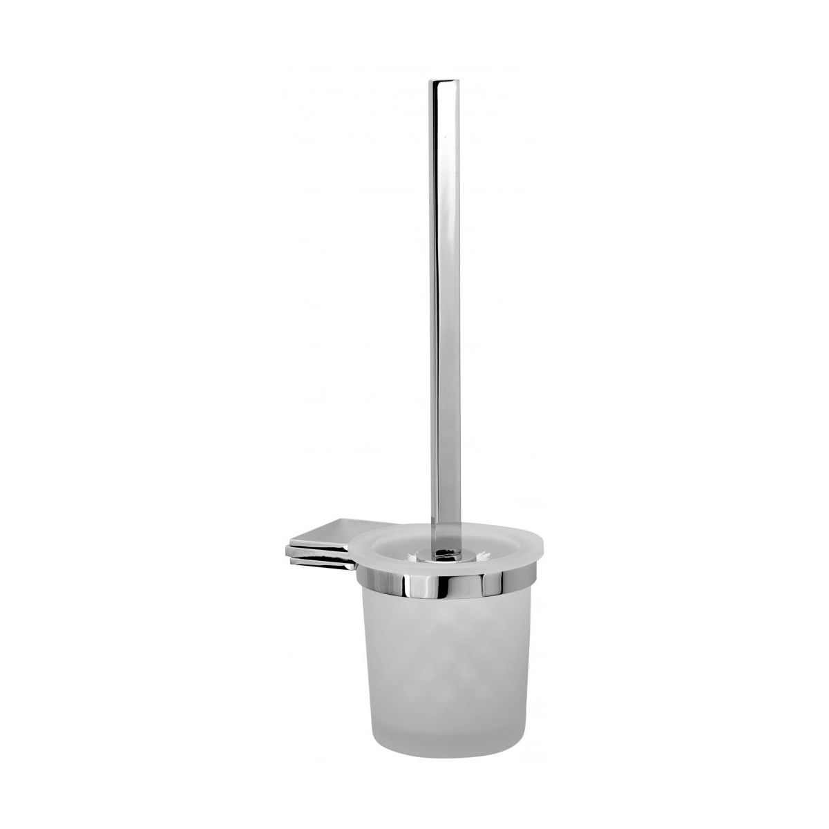 Die an der Wand befestigte Toilettenbürste aus mattem Glas gehört zu einer Designerkollektion von Accessoires mit einfachen, strengen und zugleich dynamischen Formen, die auf einem quadratischen und rechteckigen Grundriss aufgebaut sind. Die Kollektion ist für modern eingerichtete Innenräume gedacht. Sie unterstreicht perfekt den industriellen Charakter unseres Badezimmers. Die Accessoires sind mit einer glänzenden Chrombeschichtung versehen, wodurch sie besonders elegant wirken. Diese Produkte zeichnen sich nicht nur durch ihr interessantes Design aus, sondern auch durch ihre Langlebigkeit.