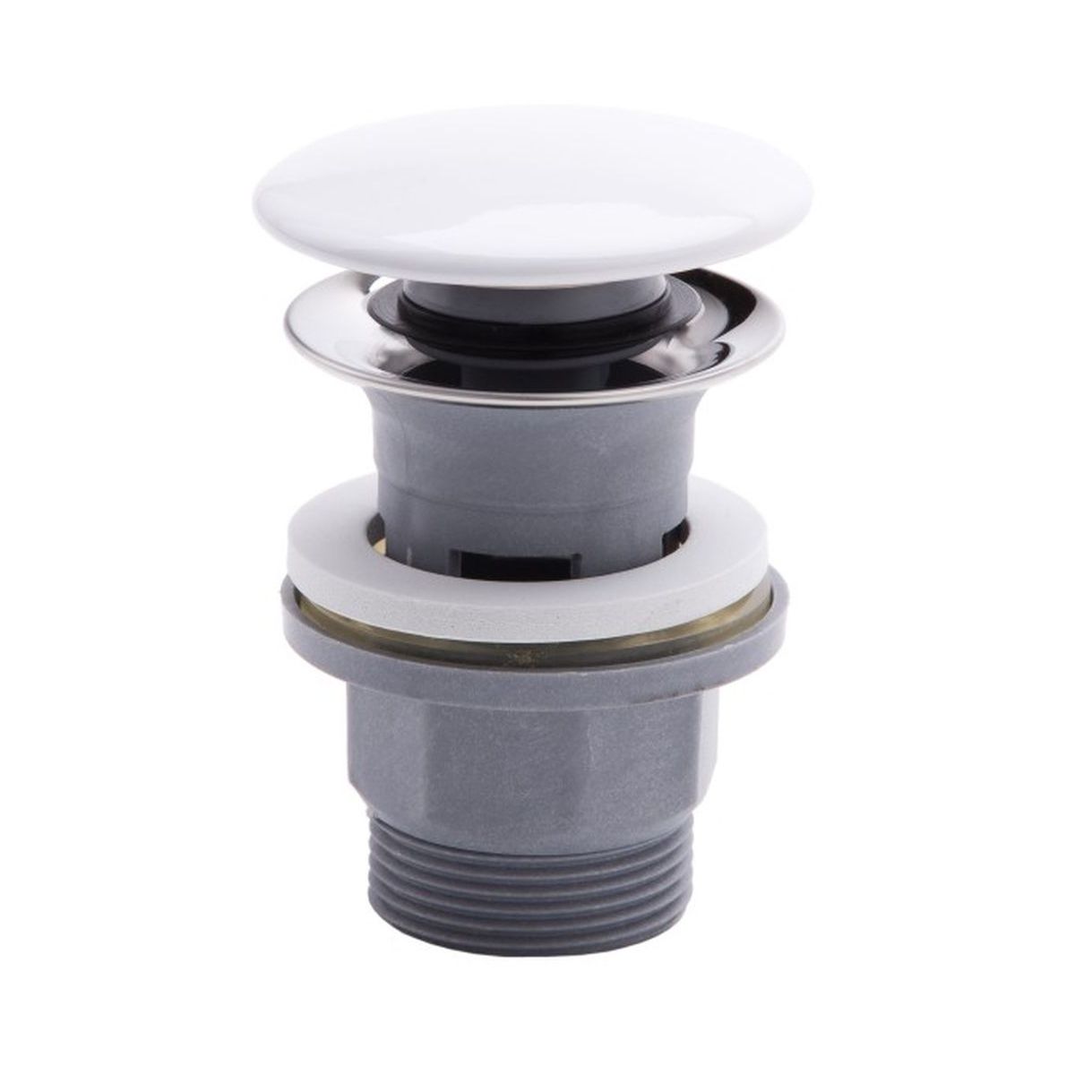 Weißer Keramikstopfen für Waschbecken mit Überlauf. Hergestellt aus strapazierfähigem und leichtem Material. Ein elegantes und sehr ästhetisches Element jedes Waschbeckens. Gehört zur Serie der Accessoires, die die Armaturenkollektion FDesign ergänzen.